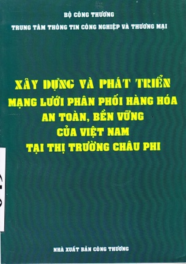 Cuốn sách “ Xây dựng và phát triển mạng lưới phân phối hàng hóa an toàn, bền vững của Việt Nam tại thị trường Châu Phi “ do Trung tâm Thông tin Công nghiệp và Thương mại làm chủ biên. Cuốn sách tập trung phân tích các thực trạng, những cơ hội , giải pháp nhằm xây dựng và phát triển mạng lưới phân phối hàng hóa của Việt nam sang thị trường Châu Phi. Cụ thể trong việc xúc tiến thương mại việc ký hợp đồng giao dịch của doanh nghiệp Việt Nam thường phải qua trung gian nước thứ ba cho nên dễ dẫn đến những vấn đề rủi ro ngoài ý muốn trong khi giao dịch với thị trường Châu Phi . Xuất phát từ những trở ngại đó, Việt Nam cần rút kinh nghiệm nhanh chóng xây dựng các kênh phân phối bền vững đánh giá xây dựng và đề ra giải pháp cung cấp các thông tin cần thiết , cấp nhật cho các cơ quan chức năng , doanh nghiệp, hiệp hội trong việc đẩy mạnh xuất khẩu, tăng khả năng thâm nhập và mở rộng thị phần cho hàng hóa Việt Nam tại châu Phi.